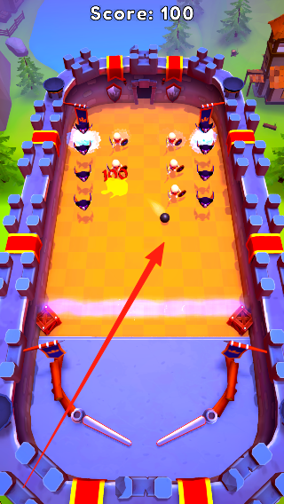 1、进入城堡,了解弹珠的操控方式,熟悉方向与射击距离的调整方法,准备用弹珠击灭首个敌人。