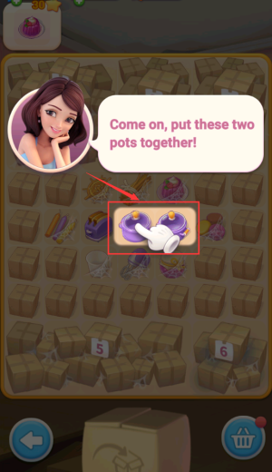 4、合并红框紫色罐子,完成两个花盆组合任务。