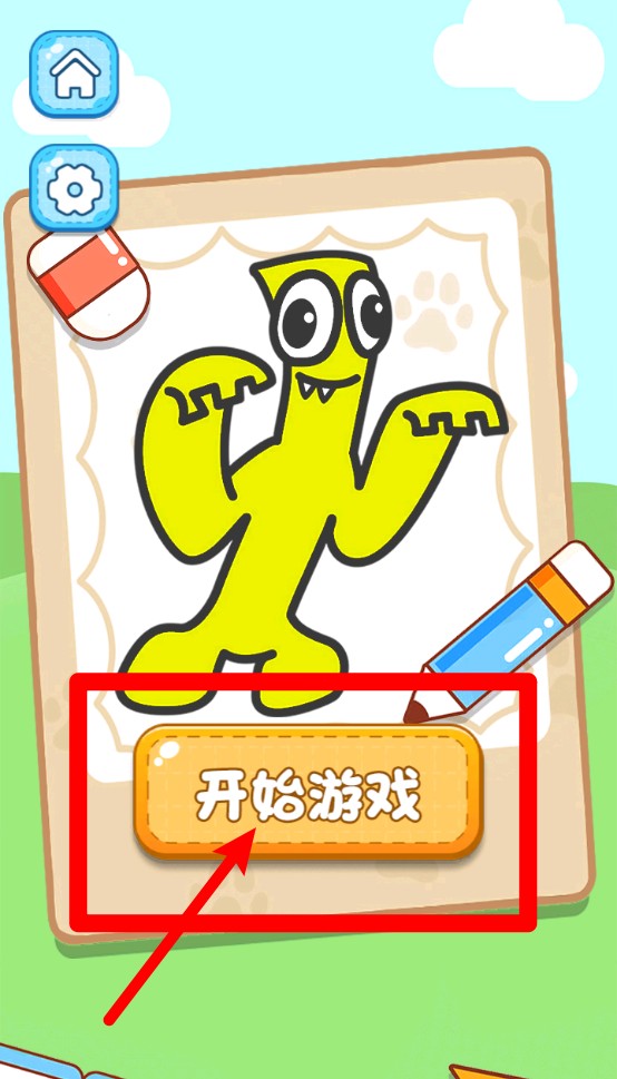 1.开始游戏按钮:点击主界面中“开始游戏”按钮,即可进入涂鸦关卡,开启专属于你的创意搞怪绘画之旅。