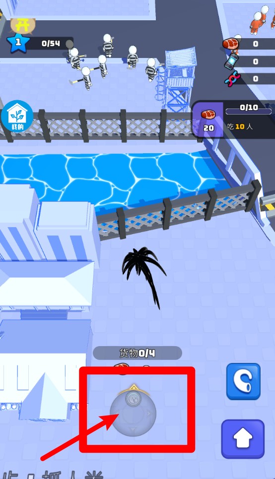 3.滑动摇杆自由移动:下方虚拟摇杆操作角色移动位置,灵活走位便于抓人吞噬更高效。