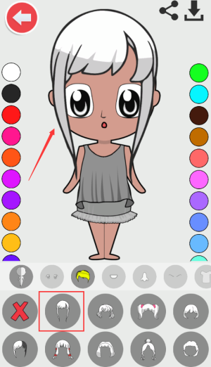4、选择红框短发图标,为角色更换发型样式。