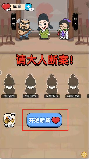 3、进入游戏后,点击下方开始断案,即可开始游玩。