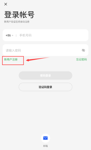 1、点击红框新用户注册按钮,进入手机号注册流程。