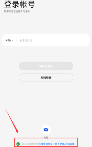 3、勾选红框协议选项,同意条款后继续登录操作。
