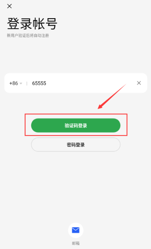 4、点击红框验证码登录按钮,获取短信验证码登录。