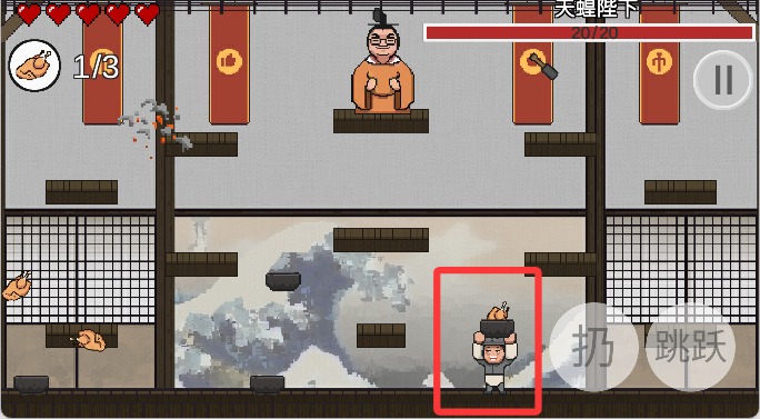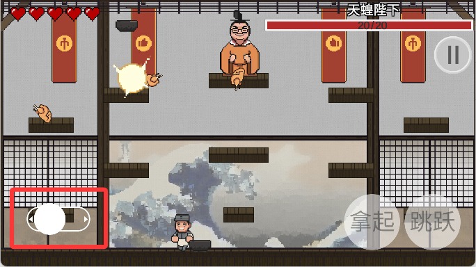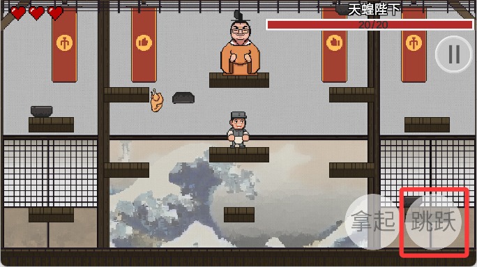 3、点击右侧的按键可以跳跃到台阶上。