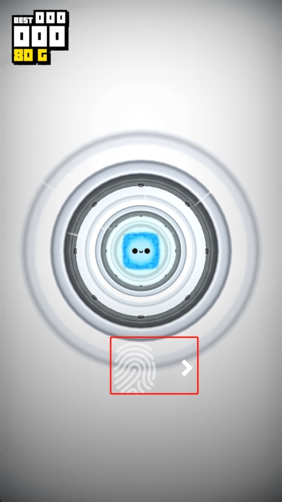1、游戏开局出现环形通道,点击指纹标识区域,启动弹珠发射,控制蓝色弹珠沿通道前进,准备撞击目标。