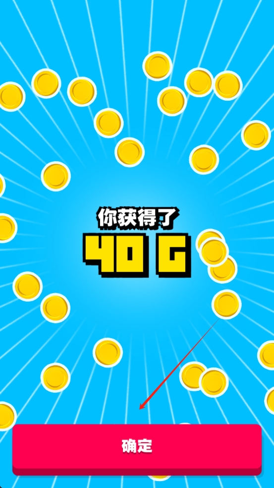 3、成功撞击后,界面显示获得40G奖励,点击红色的确定按钮,领取奖励,继续下一轮弹珠冲击挑战,积累更多金币与分数。