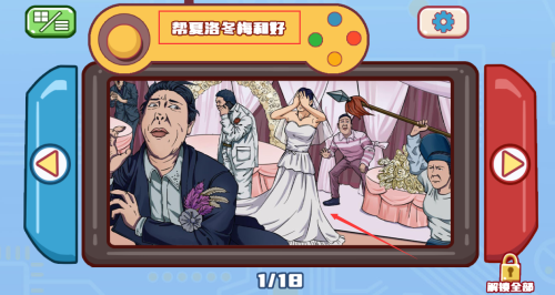 2、选择红框1/18关卡,开始婚礼剧情解谜挑战。