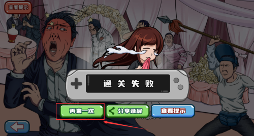4、点击红框再来一次按钮,失败后重新挑战关卡。