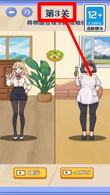 1.顶部“第3关”显示当前关卡进度,便于确认挑战阶段与目标,观察两侧场景差异,拖动关键物品触发正确解法。
