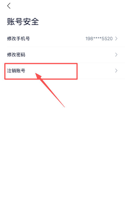 4、在账号安全界面,点击注销账号选项,发起账号注销操作。