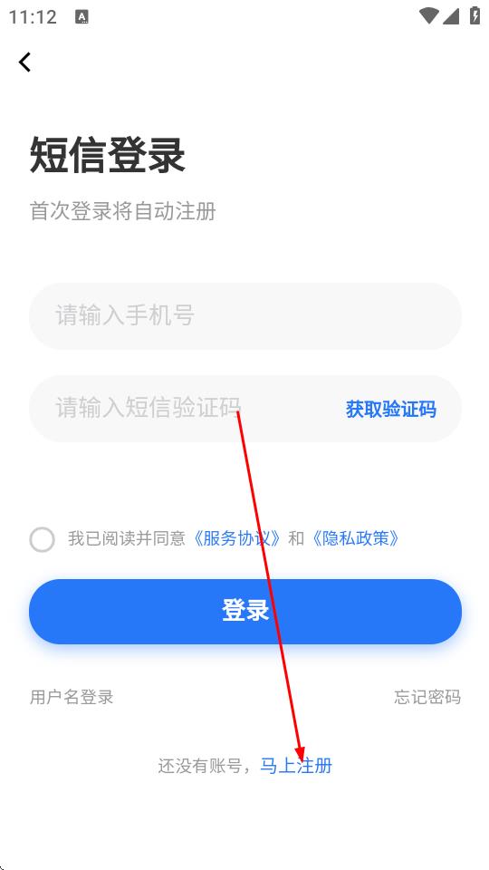 3、进入短信登录页面,点击下方还没有账号,马上注册选项。