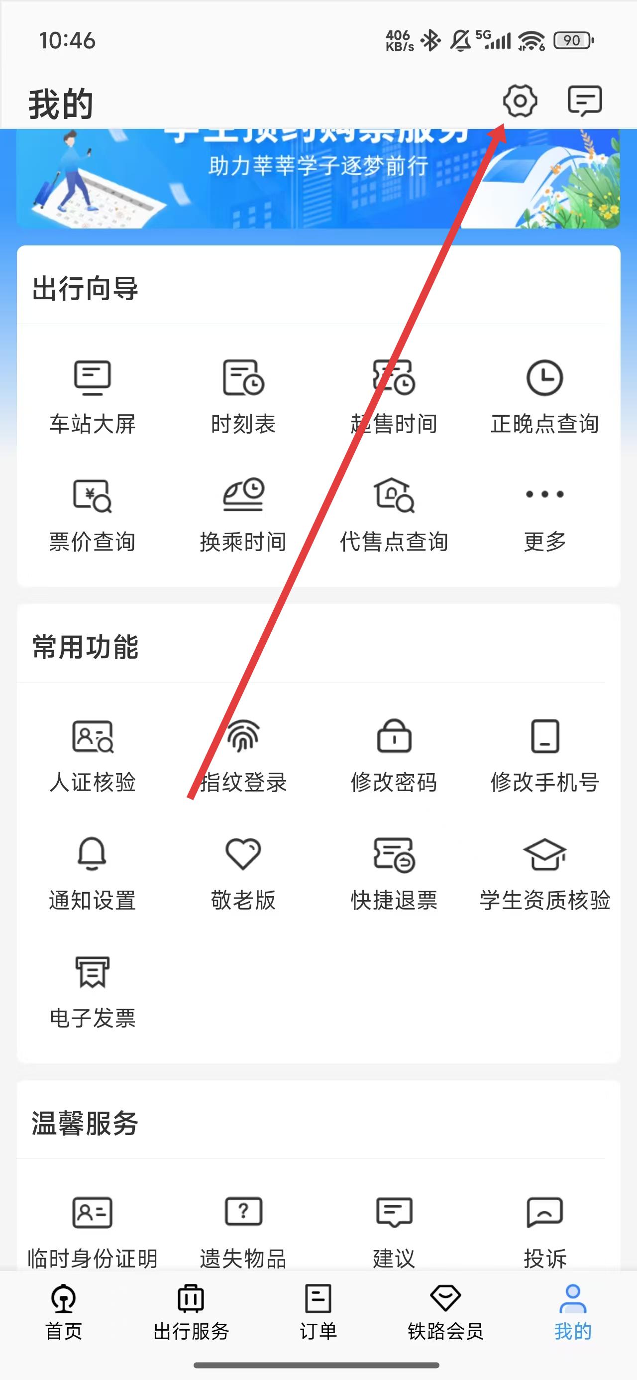 1、在我的页面中,可以通过点击上方齿轮图标,进入查看设置功能选项。