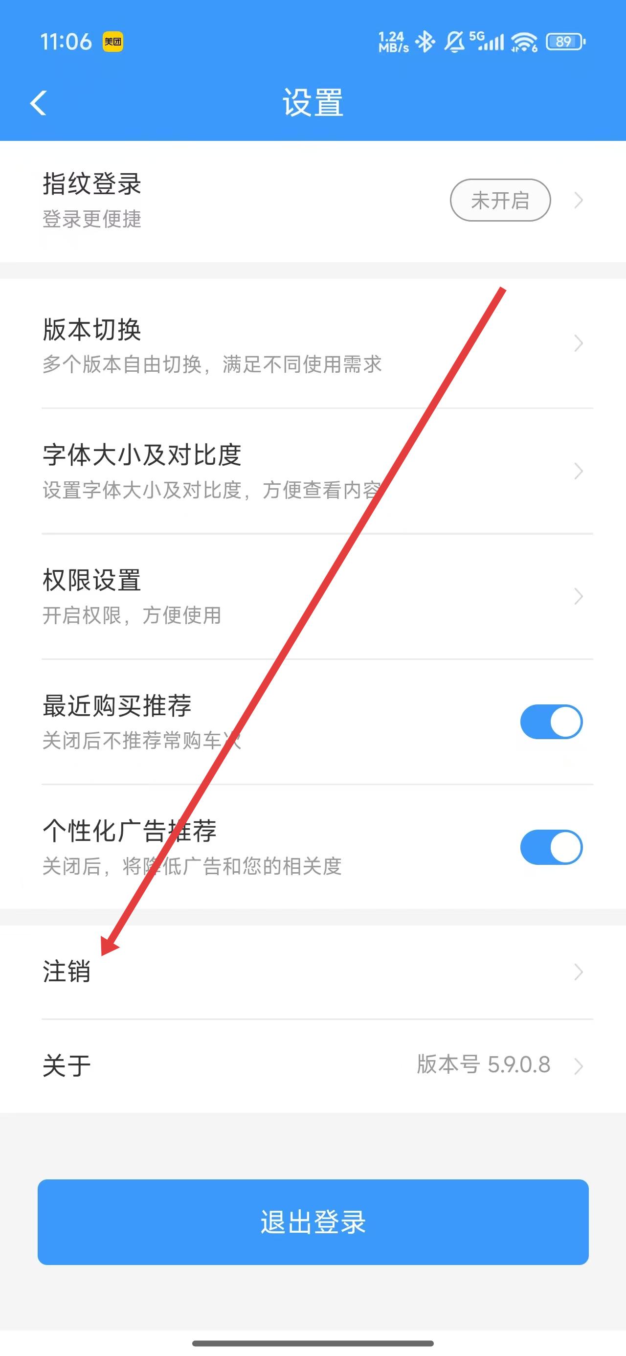 2、在进入到设置页面后,可以在下方找到注销功能,点击进行注销操作。