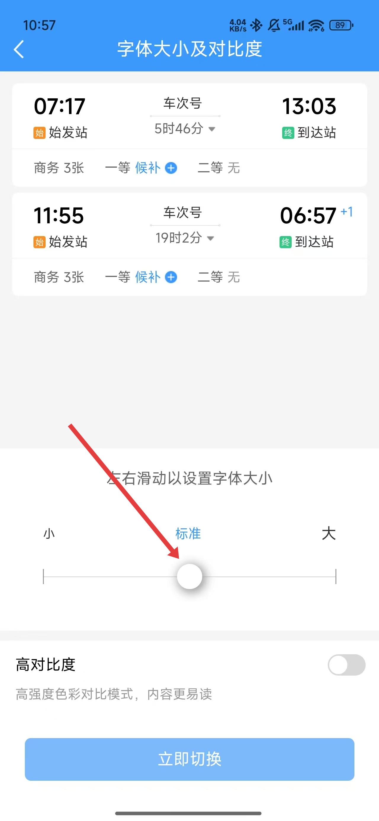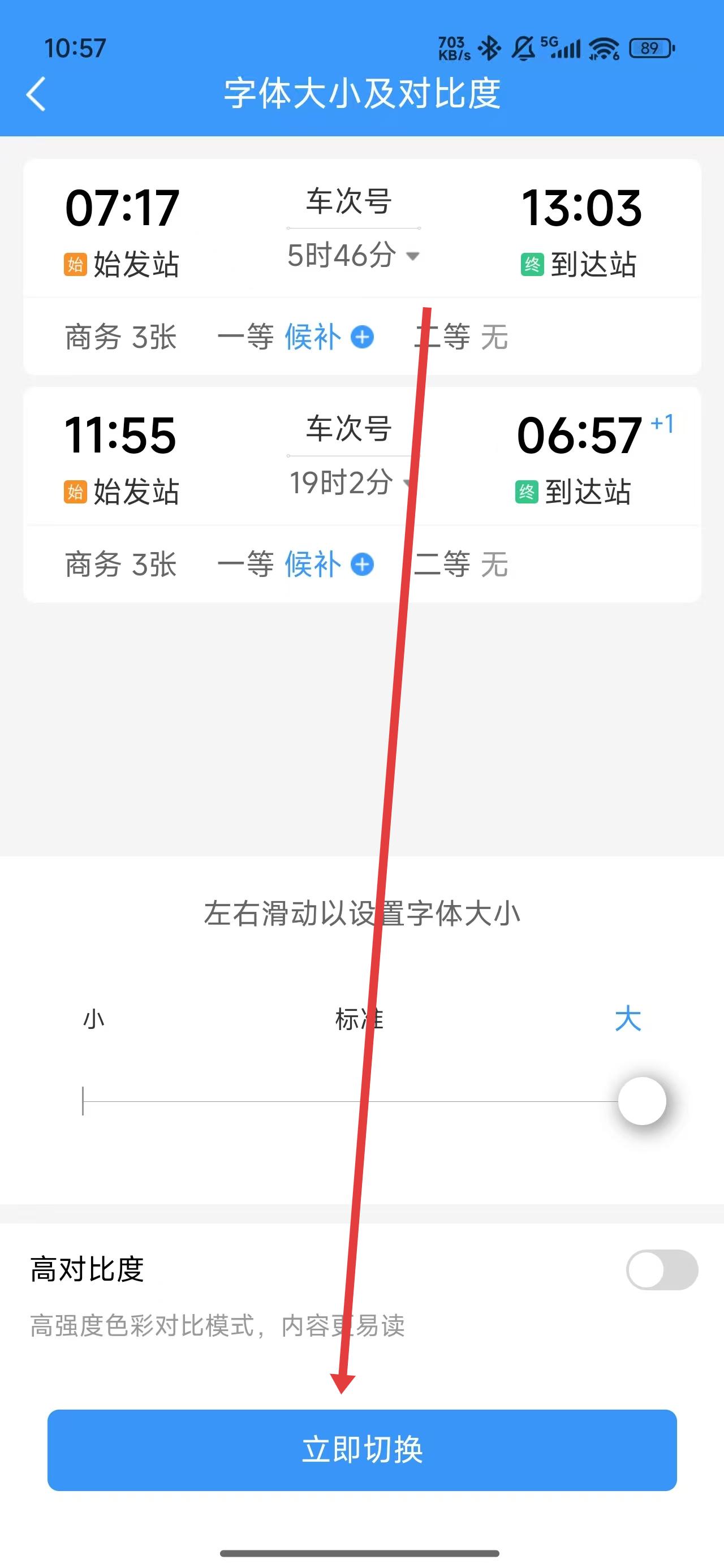 4、在设置好字体大小后,可以点击立即切换按钮,完成设置操作。