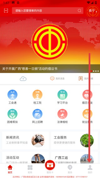 整合“广西工会”APP内所有服务项目,可通过该模块快速找到所需服务。