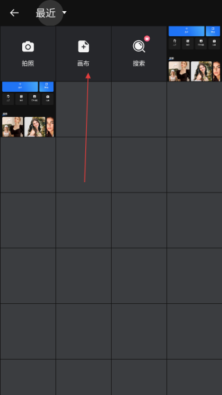 2、在图片选择界面,点击画布选项,进入画布设置页面。
