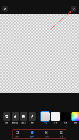 3、在画布设置页面,对画布的比例、背景、边框、位置等进行调整,设置完成后点击右上角的确认按钮。