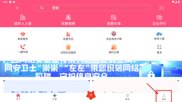 1、打开本地服务类APP,点击底部我的选项,进入个人中心页面。