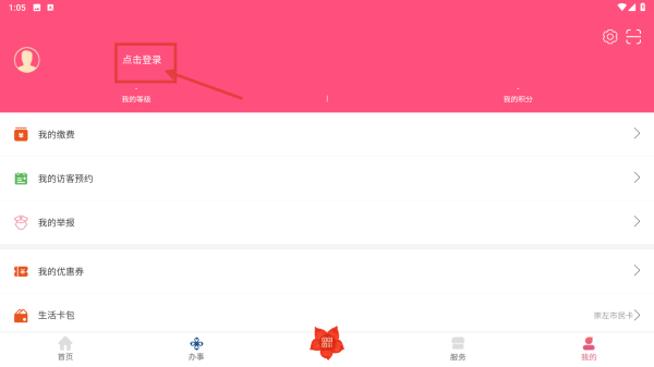 2、在个人中心页面,点击点击登录区域,进入登录选择界面。