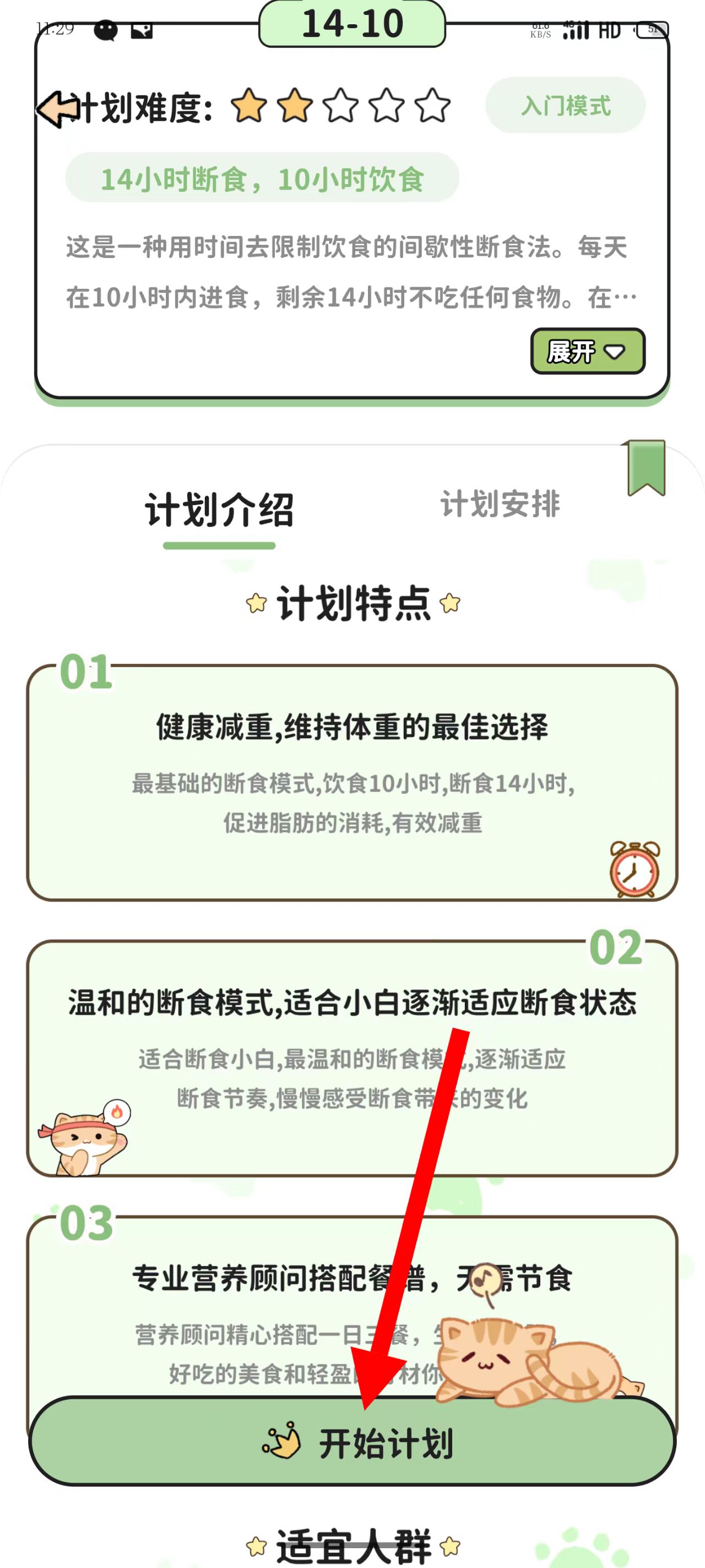 4、进入所选断食计划详情页,点击开始计划,即可开启轻断食之旅。