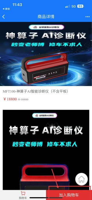 4、在商品详情页,点击加入购物车按钮,将该诊断仪加入购物车。