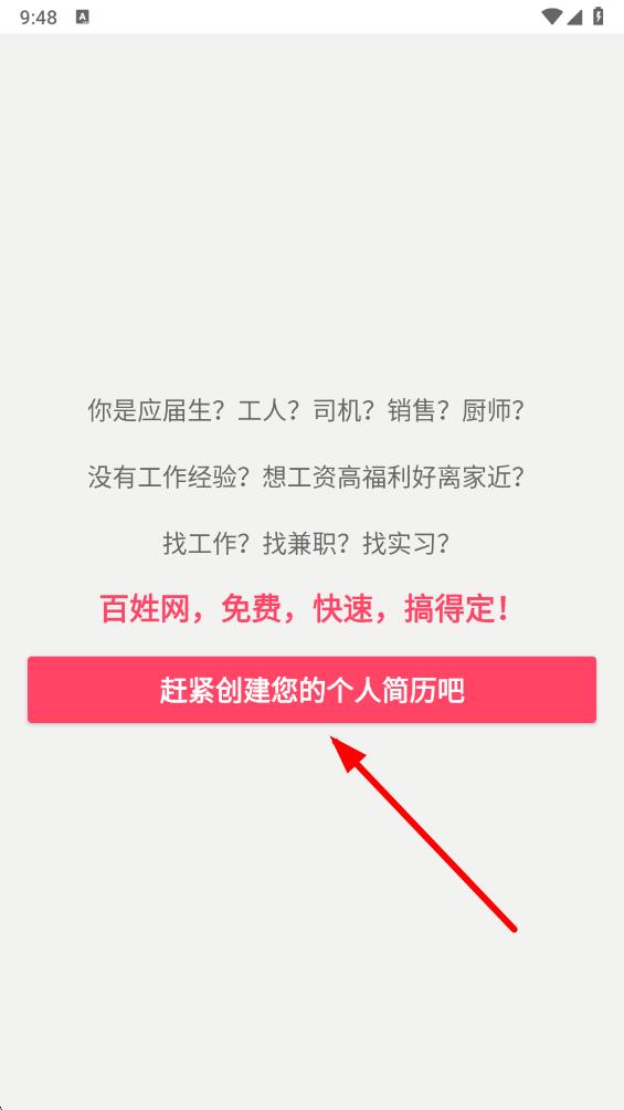 3、进入简历相关页面后,点击赶紧创建您的个人简历吧按钮。