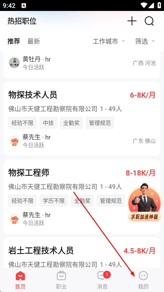 1、打开一览职业app,进入首页,点击底部导航栏中的我的。