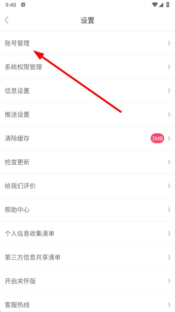 2、在设置界面里,点击账号管理选项,进入账号管理页面。