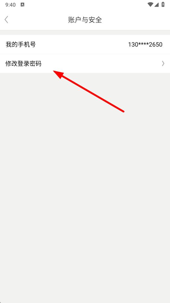 4、在账户与安全页面,点击修改登录密码选项,进入修改密码页面。