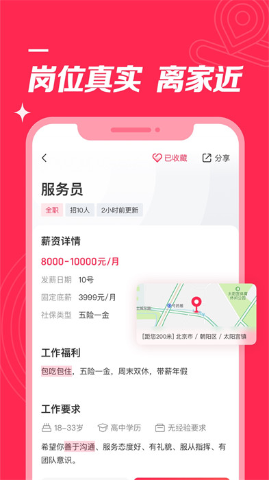 【职位更精准】智能职位推荐算法,优先推荐给你离家近的招聘信息,职位经过严格审核,不担心被骗。