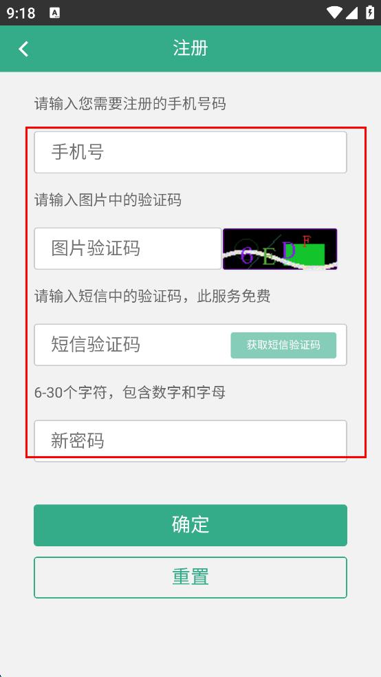 3、输入手机号码,接着查看图片验证码并输入,然后点击获取短信验证码按钮,输入到的短信验证码,最后设置密码。