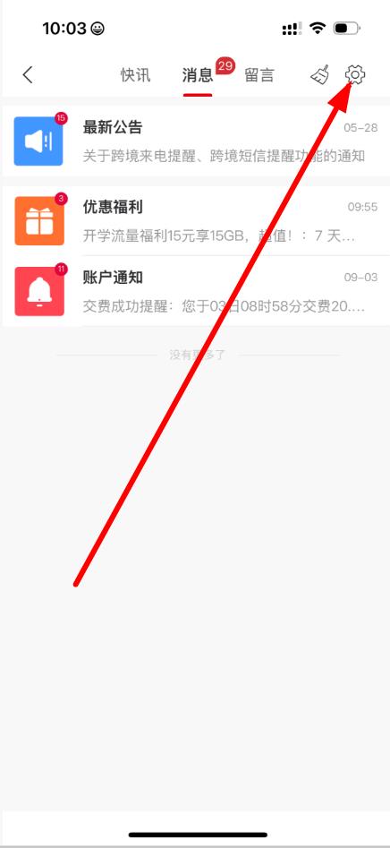 3、在消息界面右上角,点击设置图标,进入消息设置。
