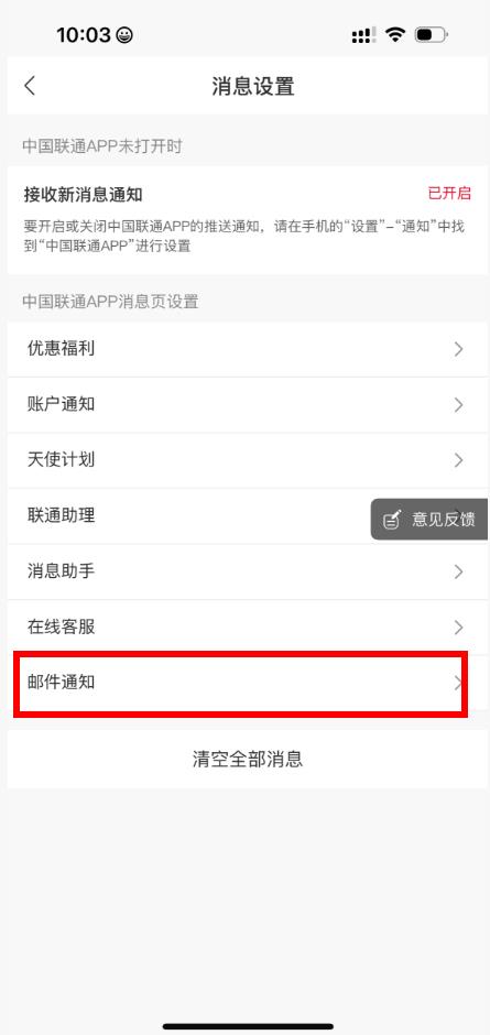 4、在消息设置界面中,找到并点击邮件通知选项,即可进入邮件通知界面。