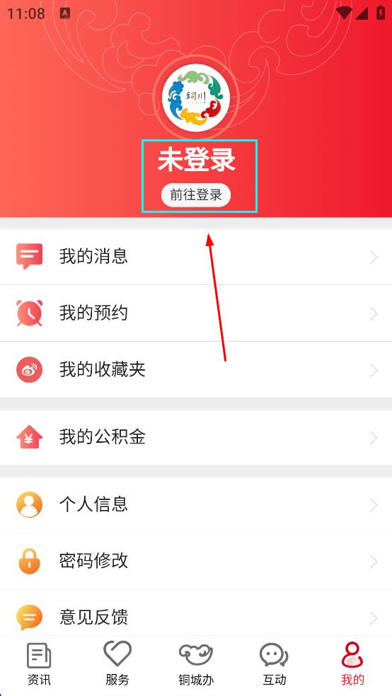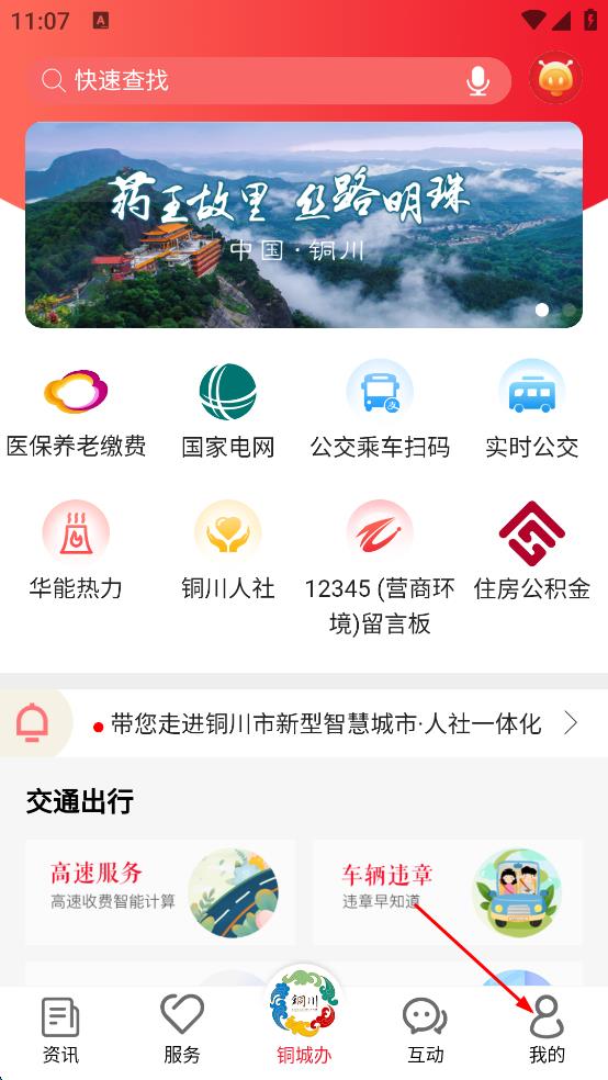 1、打开铜川城市服务类APP,进入首页后,点击页面右下角“我的”选项,进入个人中心页面。