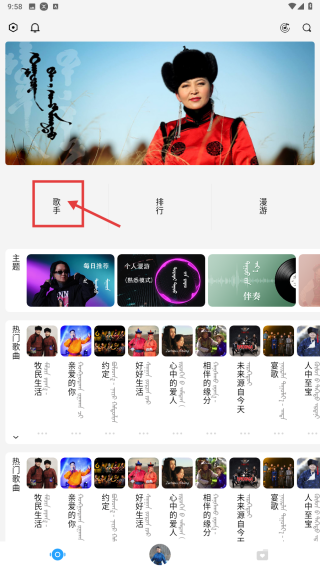 1、打开音乐类APP,点击歌手选项,进入歌手列表页面。