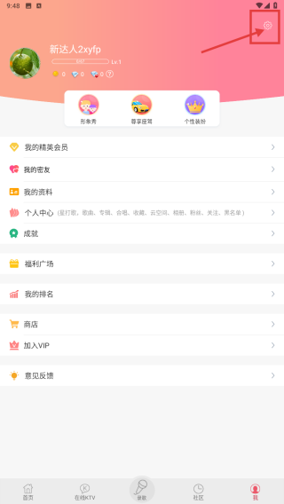 2、在个人中心,点击右上角设置图标,进入设置界面。