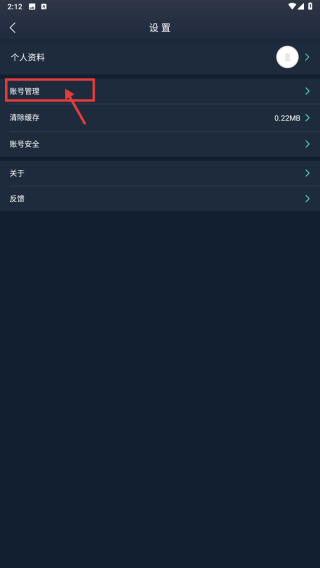 3、在设置页面,点击账号管理选项,进入账号管理页。