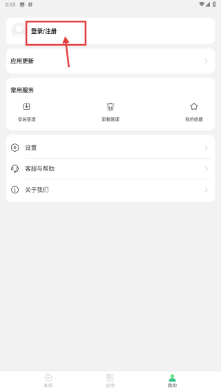 2、在个人中心,点击登录/注册选项,进入登录方式选择界面。