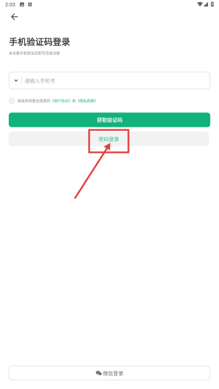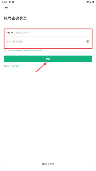 3、选择密码登录模式,输入手机号码和登录密码。