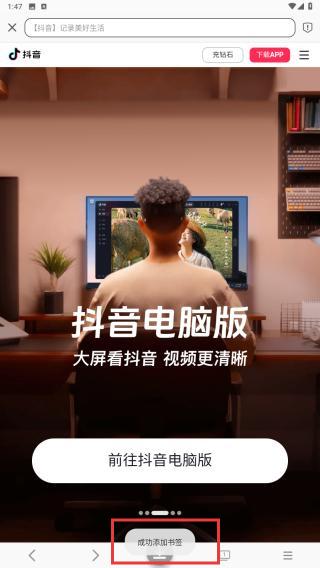 4、点击后,页面会弹出成功添加书签,表示收藏成功。