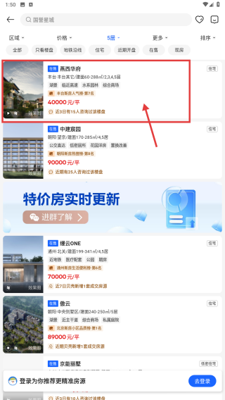 4、在筛选结果中,找到燕西华府房源,点击查看该房源详情。