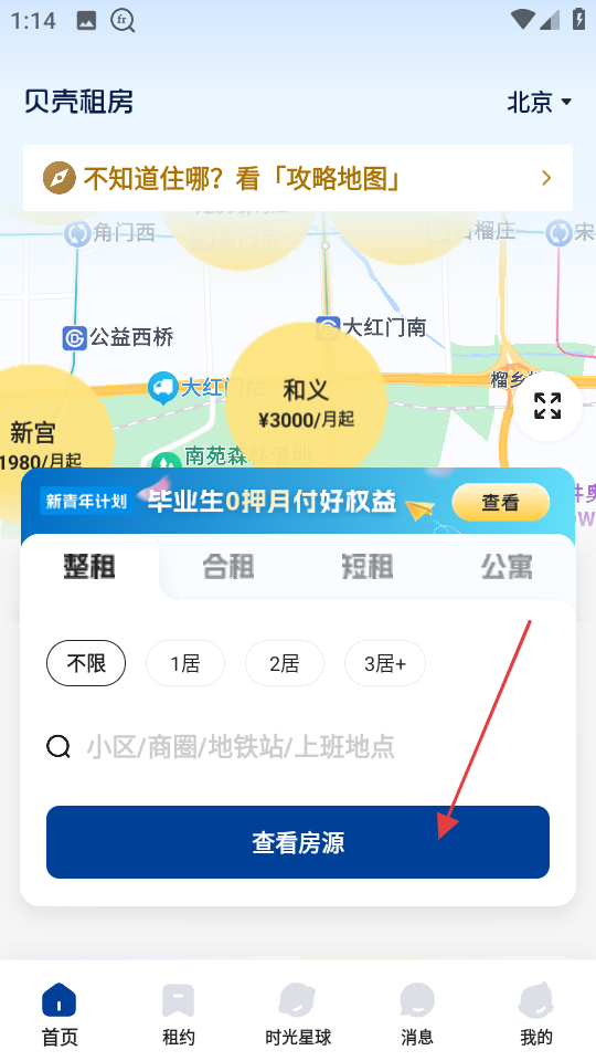 1、筛选查找房源:打开APP后,在首页设置目标城市,输入租金预算、期望房型、意向区域等筛选条件,点击搜索即可获取符合条件的列表,点击房源可查看详细信息。