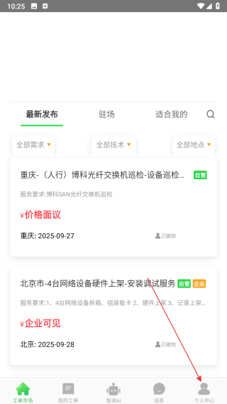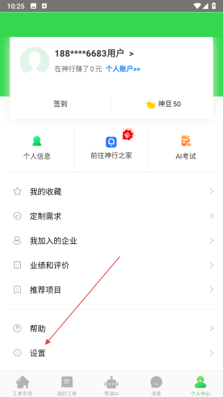 1、打开神行工程师APP,点击底部导航栏的个人中心,进入个人中心页面。