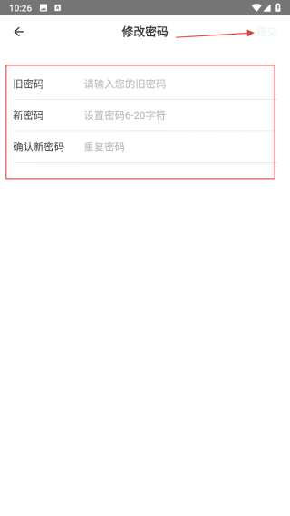 4、在修改密码界面,依次输入旧密码、新密码、确认新密码,输入完成后点击提交。
