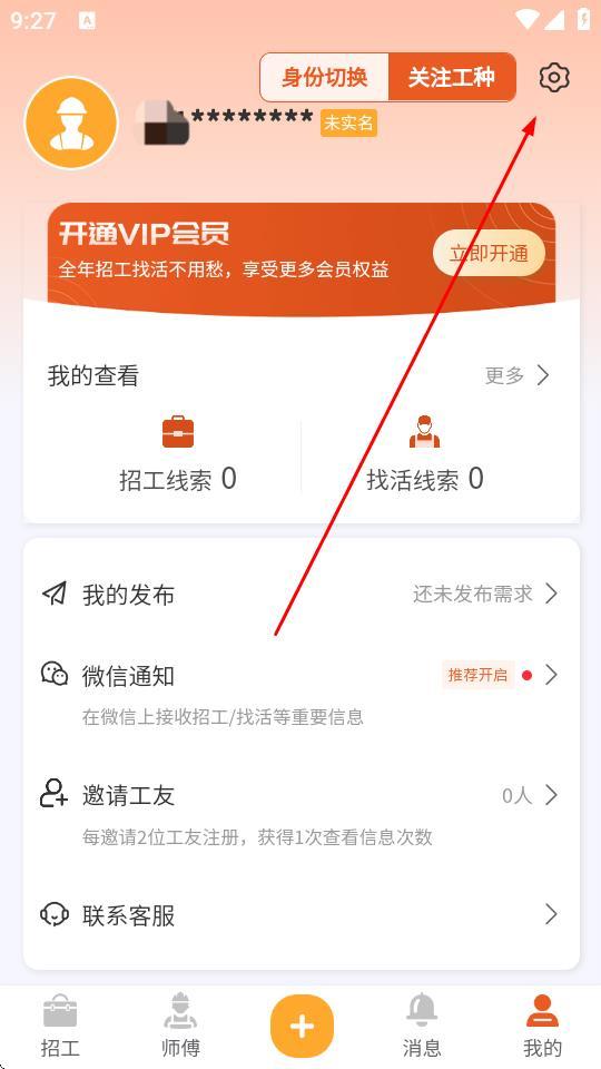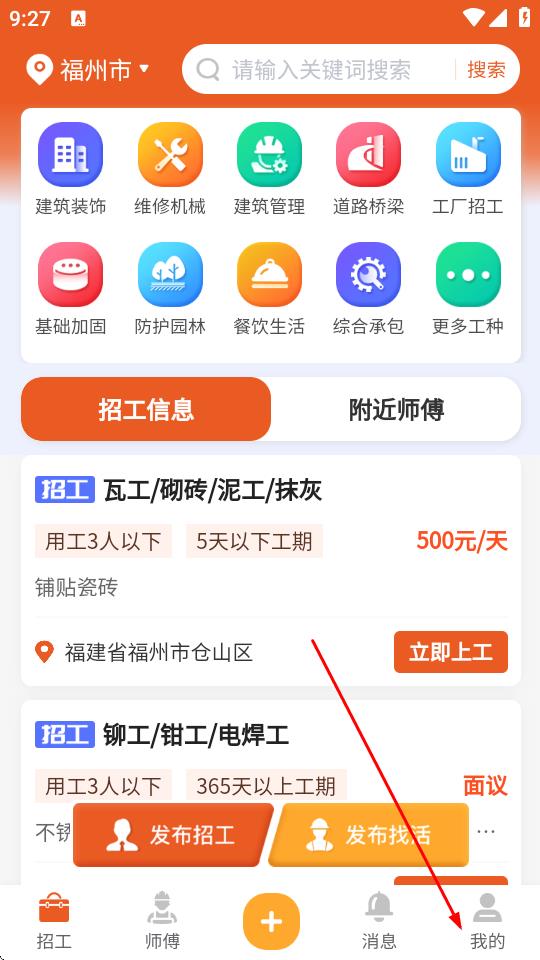1、打开今日招工APP,点击底部导航栏中的我的。