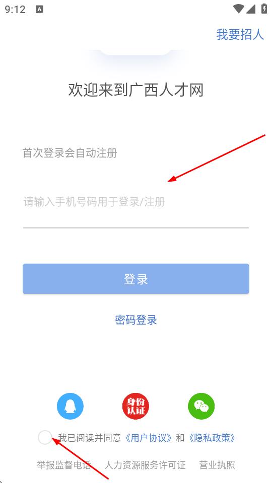 2、进入登录/注册界面,输入手机号码,勾选我已阅读并同意用户协议和隐私政策,点击登录。