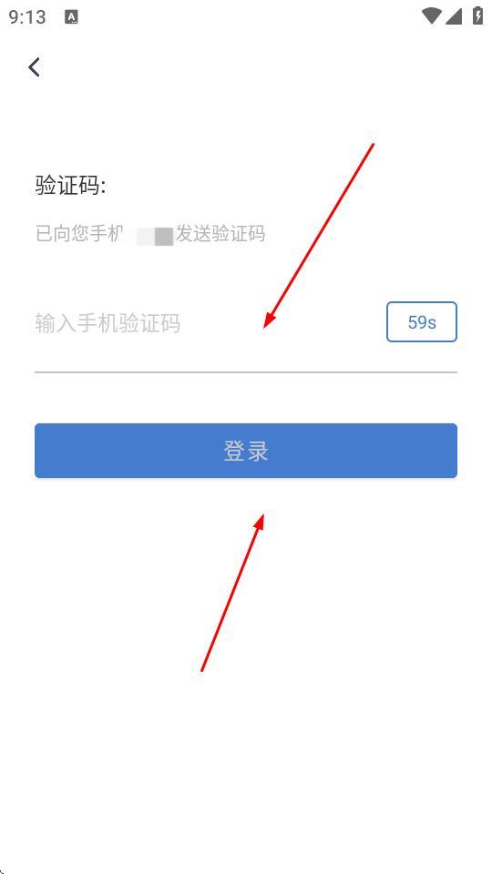 3、在验证码输入页面,输入收到的手机验证码,再次点击登录。