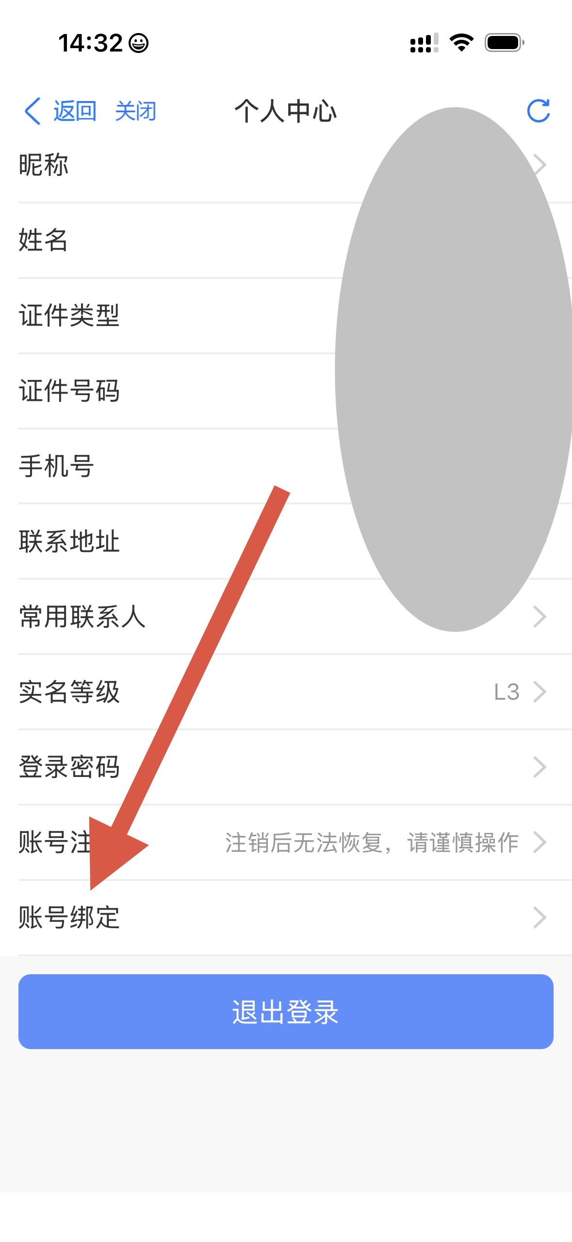 3、在个人中心页面,点击账号绑定选项。
